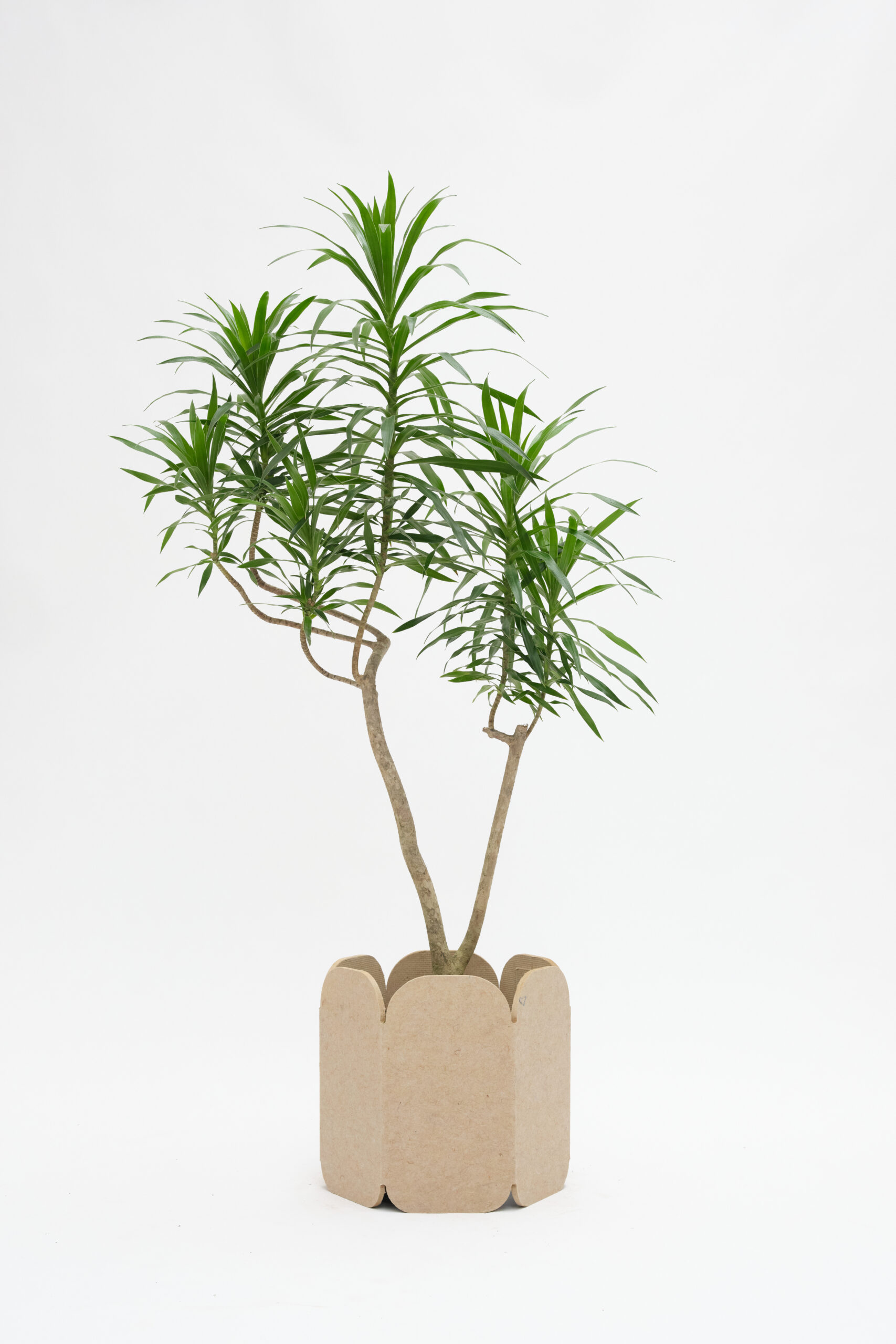 細長く光沢のある濃い緑色の葉と、自然に曲がりくねる幹が特徴的な植物です。