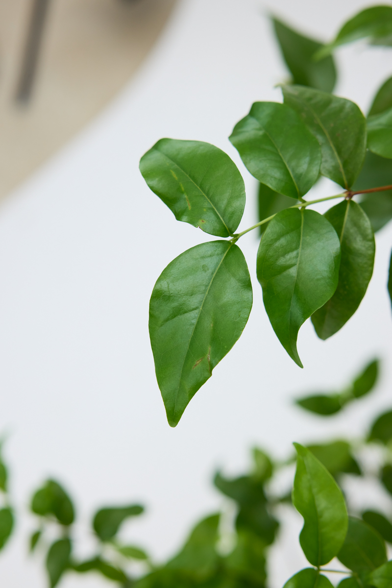 光沢のある美しい小葉と赤い果実が特徴です。果実は食用にもなります。