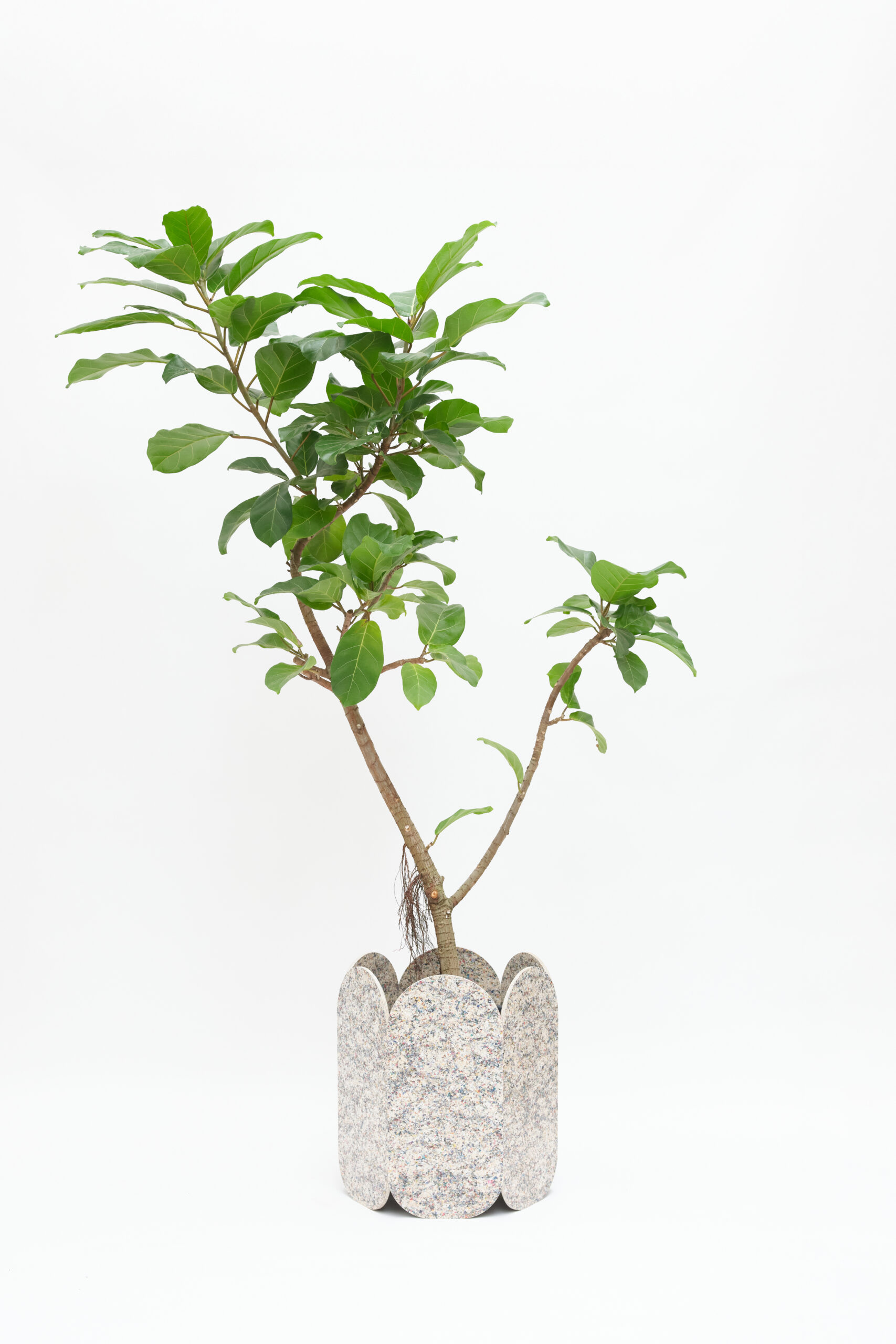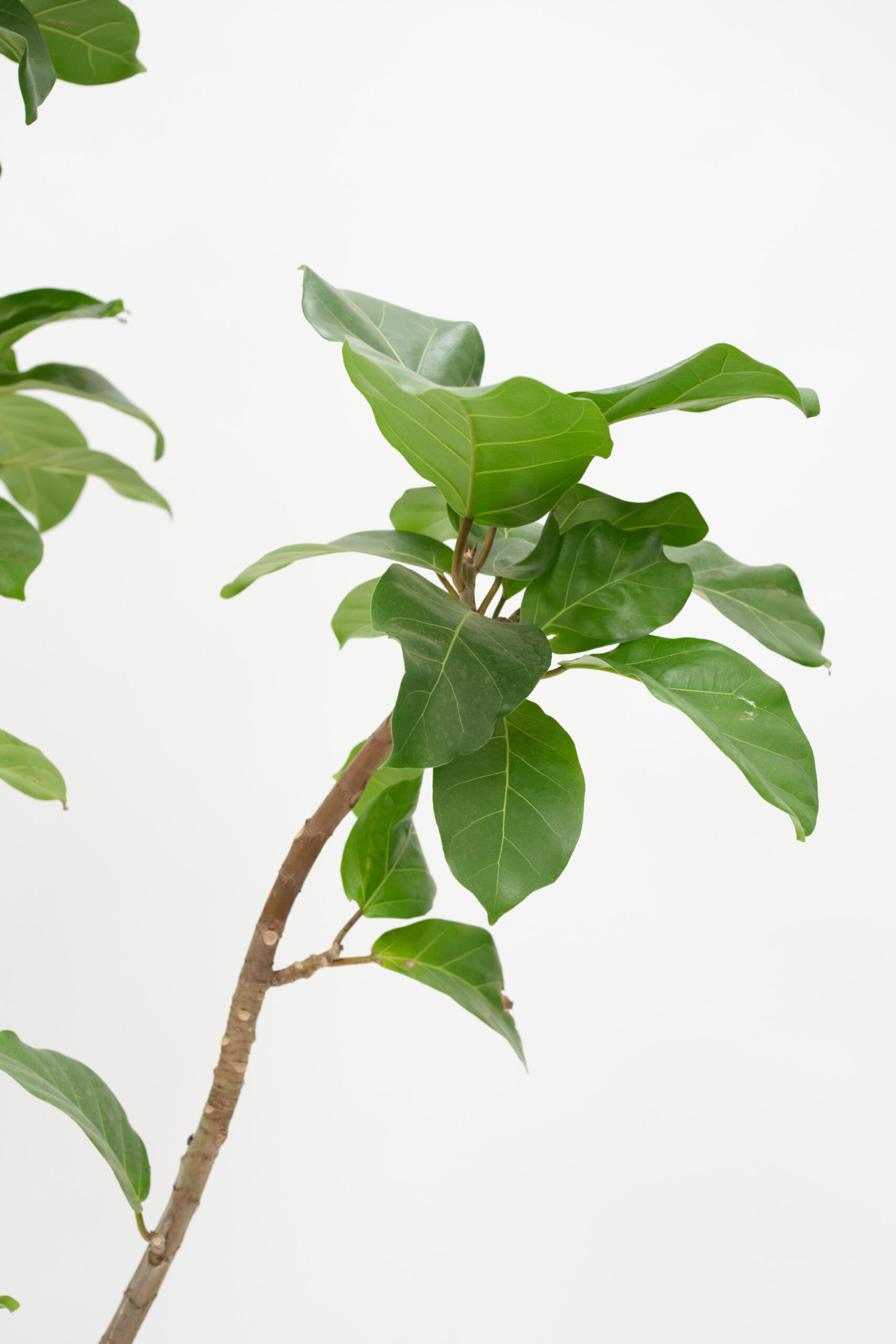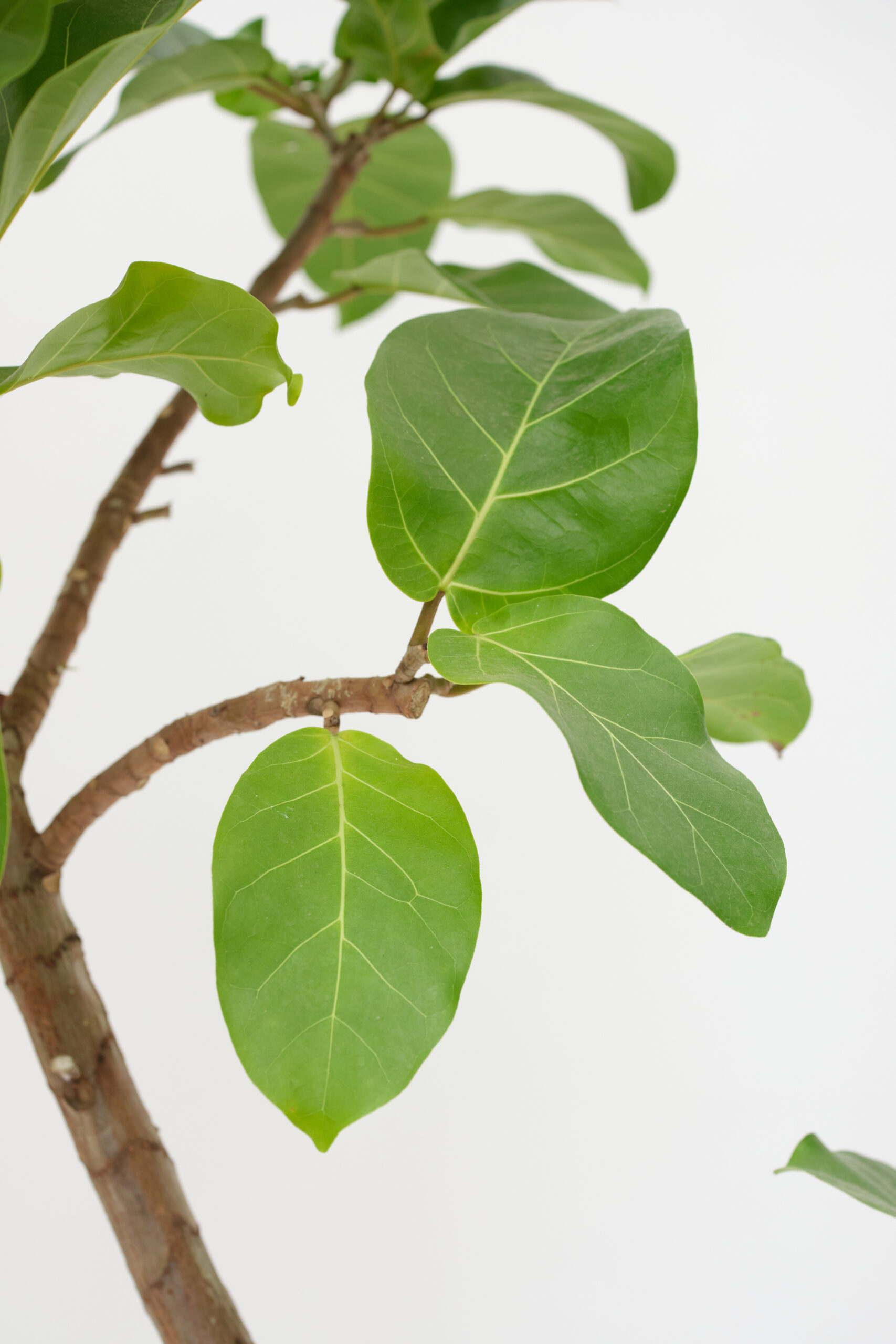 大きな濃緑色の葉と、はっきりと浮き出た美しい葉脈、艶やかな光沢が特徴的な植物です。ダイナミックかつシックな樹形は空間の雰囲気を一変させる存在感があります。