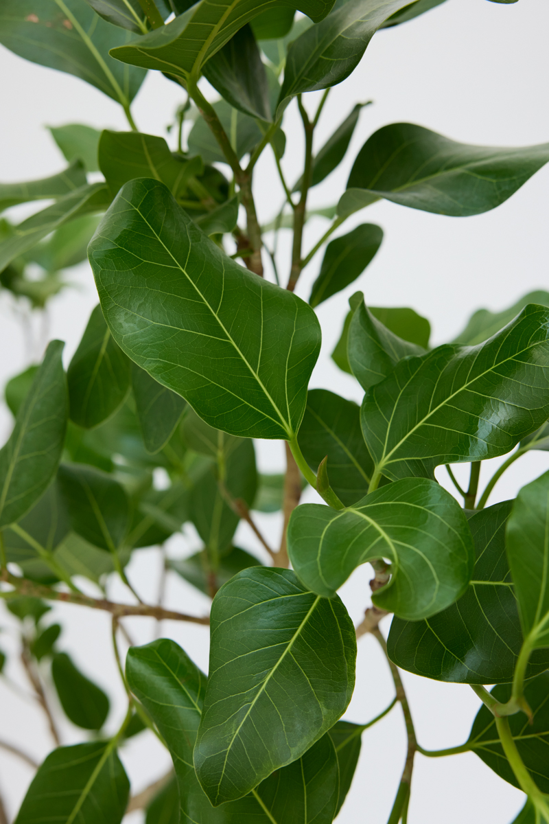 丸葉でウェーブのかかった葉と美しい幹姿が特徴です。やや耐陰性があります。