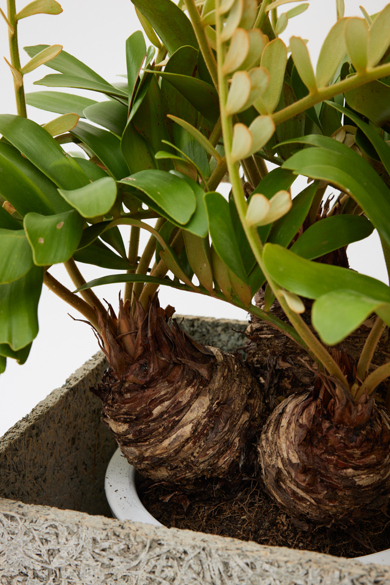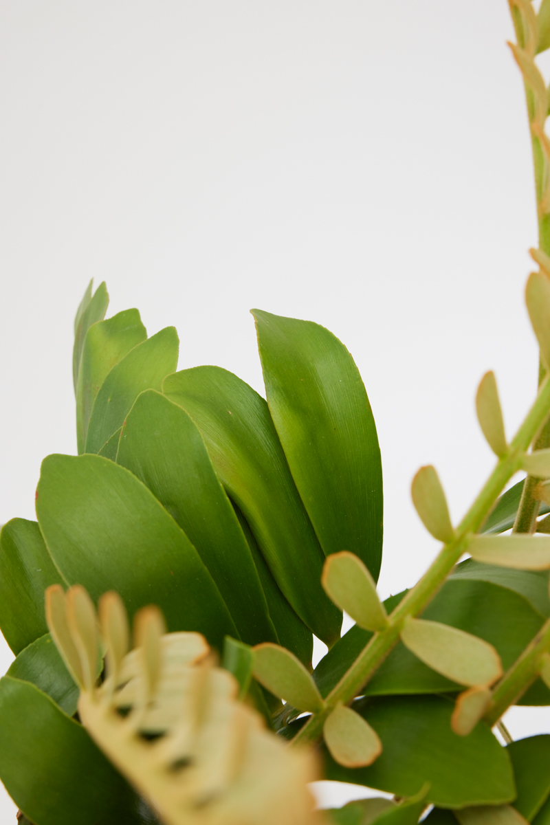 ザミアは約30~40種類品種があります。葉に丸みがあり、つややかな葉の裏に細かな毛が生えているのが特徴です。